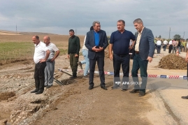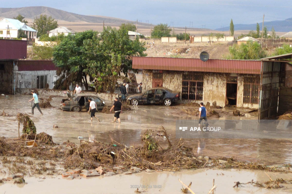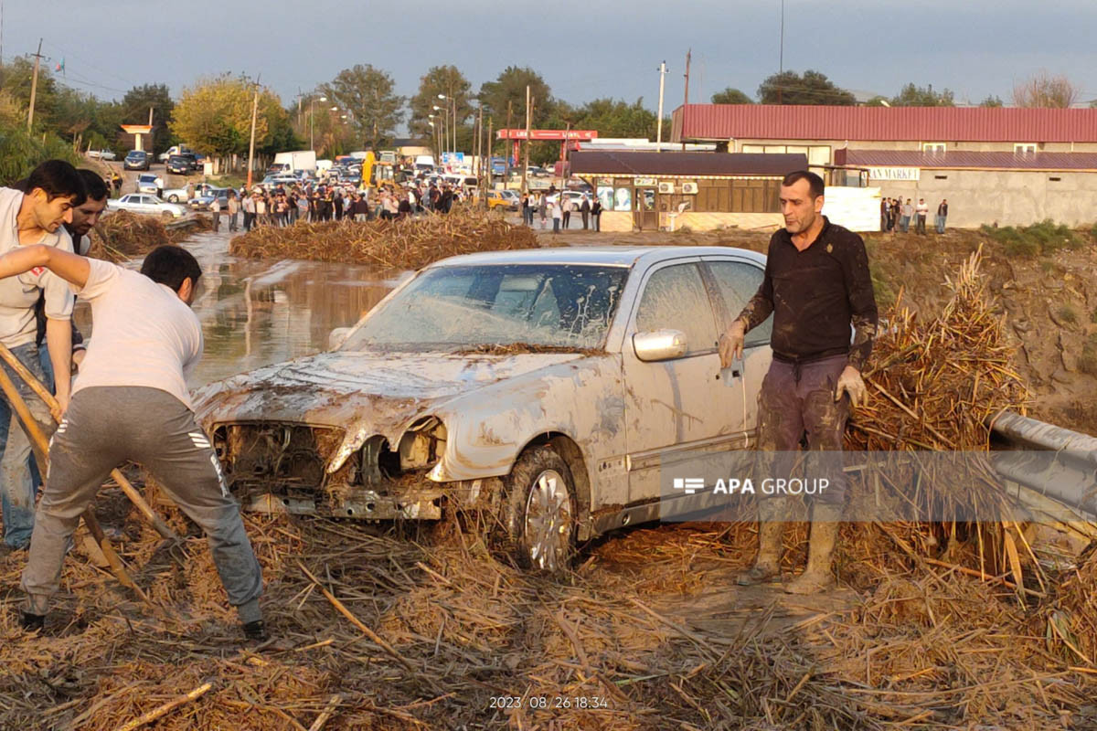 Hazırda dəymiş ziyanın hesablanması məqsədi ilə Fövqəladə Hallar Nazirliyinin əməkdaşları əraziyə baxış keçirir. (apa)