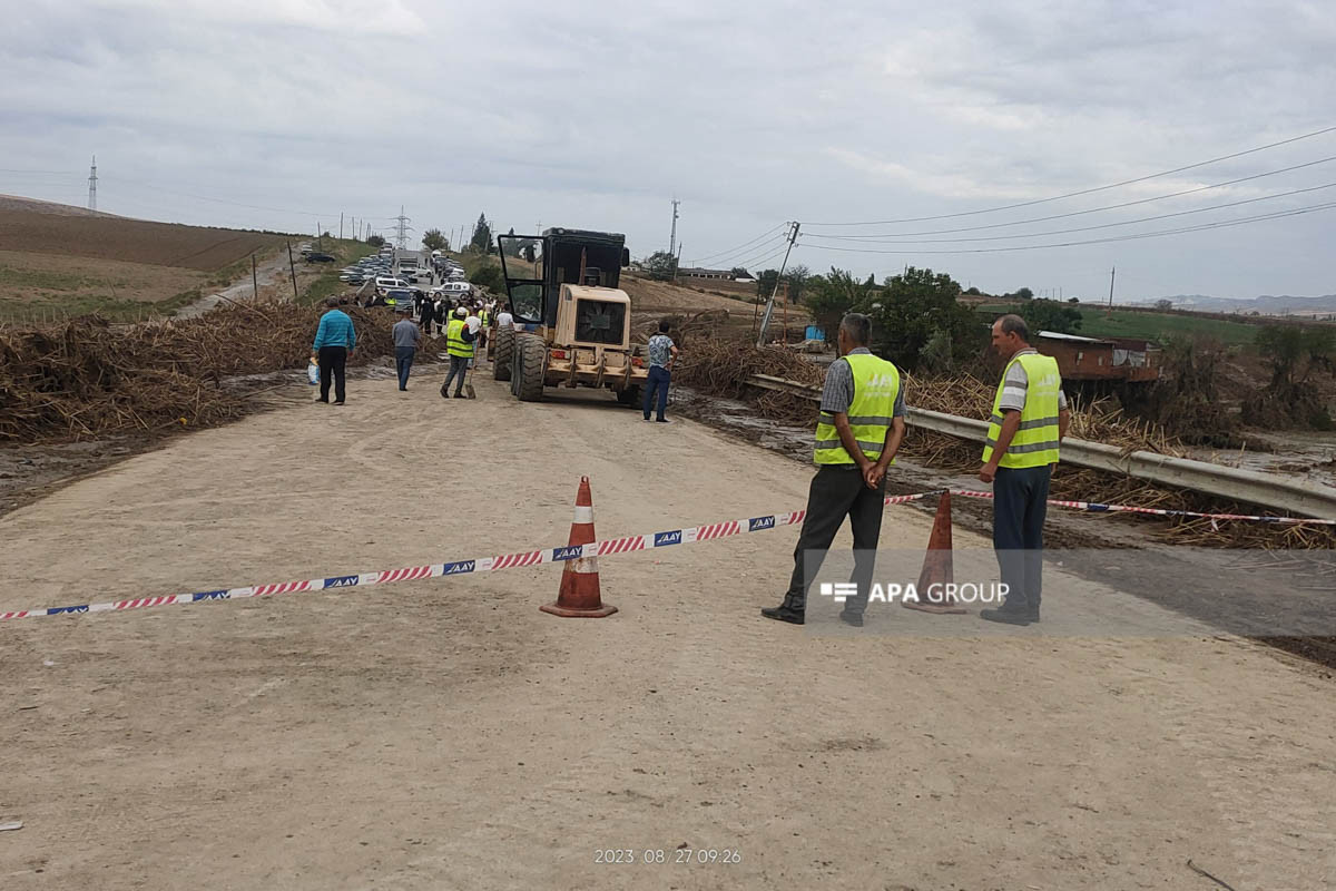Əraziyə Avtomobil Yolları Dövlət Agentliyinin canlı qüvvəsi və texnikası cəlb olunub. Bütün bu görülən işlərlə yanaşı ziyan dəymiş elektrik və rabitə dirəklərinin də bərpası işləri aparılır.