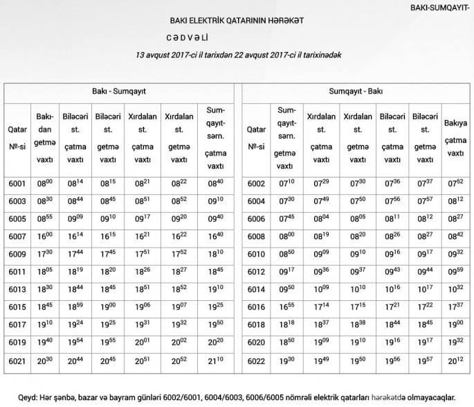 Bakı-Sumqayıt elektrik qatarının yeni hərəkət CƏDVƏLİ
