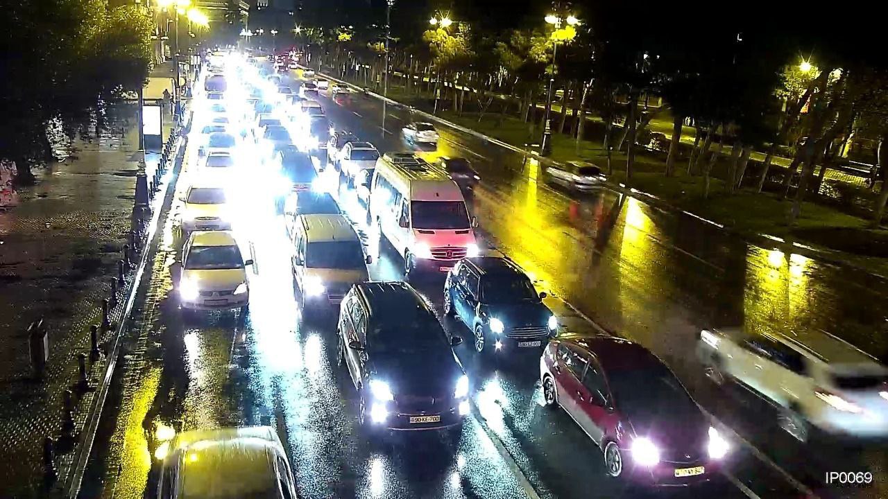 23. Mikayıl Üseynov prospekti, Bayraq Meydanının qarşısından Azneft dairəsi istiqamətində sıxlıq müşahidə olunur.