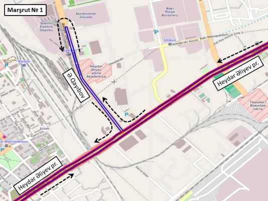 Bakı Nəqliyyat Agentliyinin məlumatı “Koroğlu” Nəqliyyat Mübadilə Mərkəzindən metorunun “28 may” stansiyası, eləcə də əks istiqamətdə hərəkət edən 1 nömrəli marşrut xəttinin hərəkət trayektoriyasında dəyişiklik edilməsi ilə bağlı məlumat yayıb. Avtosfer.az-a verilən məlumatda bildirilir ki, dəyişikliyə əsasən, “Koroğlu” NMM-dən Heydər Əliyev prospekti ilə şəhər istiqamətində hərəkət edən avtobuslar “Azərsu” ASC-nin yeni tikilən inzibati binasının qarşısından Ələsgər Qayıbov küçəsinə dönəcək. Daha sonra avtobuslar Ələsgər Qayıbov küçəsi 10 ünvanında yerləşən iş mərkəzinin qarşısındakı geri dönmədən əks istiqamətdə qayıdaraq Heydər Əliyev prospekti ilə əvvəlki xətt üzrə hərəkət edəcək. Dəyişikliyin edilməsində məqsəd, həmin ərazidə yaşayan sakinlərin, həmçinin, Ələsgər Qayıbov küçəsində yerləşən dövlət və özəl qurumların əməkdaşlarının şəhər mərkəzinə rahat gedişini təmin etməkdir. Məlumat üçün bildirək ki, Ələsgər Qayıbov küçəsində və ona yaxın ərazidə yaşayış və iş yerlərinin olmasına baxmayaraq, ərazidən hər hansı bir marşrut xətti keçmirdi. Qeyd edək ki, bu dəyişikliyin avtobuslararası intervala təsirinin qarşısını almaq məqsədi ilə daşıyıcı tərəfindən xəttə buraxılan nəqliyyat vasitələrinin sayı artırılacaq.
