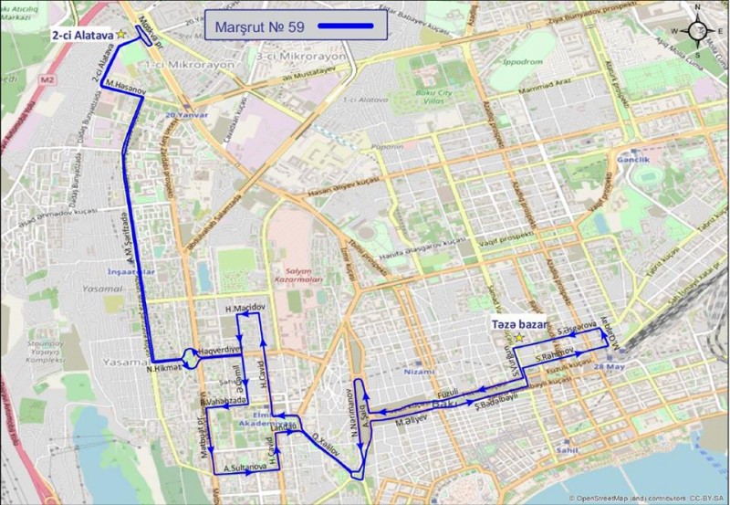 Bakıda 59, 108 və 159 nömrəli müntəzəm marşrut xətlərinin hərəkət istiqamətinə dəyişiklik edilib. Bu barədə Avtosfer.az Bakı Nəqliyyat Agentliyinə istinadən xəbər verir. Belə ki, 59 nömrəli marşrut xətti hərəkət sxemində dəyişiklik edilməklə bərpa edilib. Dəyişikliyə əsasən, 59 nömrəli marşrut xətti üzrə avtobuslar 2-ci Alatava yaşayış sahəsi-Mətbuat prospekti-Səməd Vurğun küçəsindən keçməklə son dayanacaq olaraq S.Rəhimov küçəsi (“28 May” metrostansiyasının yaxınlığı) müəyyən edilib. Dəyişiklik edilməsinə səbəb, 2-ci Alatava yaşayış sahəsinin sakinlərinin Bakı Nəqliyyat Agentliyinə çoxsaylı müraciətidir. Sözügedən dəyişiklik nəticəsində, 2-ci Alatava yaşayış sahəsinin sakinlərinin şəhər mərkəzinə rahat gediş gəlişi təmin ediləcək. 2-ci Alatava-metronun “Elmlər Akademiyası” stansiyası istiqamətində isə gediş gəliş 159 nömrəli müntəzəm marşrut xətti üzrə hərəkət avtobuslarla təmin ediləcək.