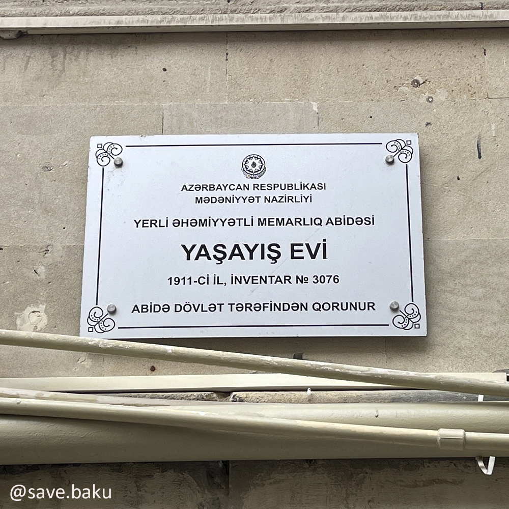 Memar konkret nümunə kimi paytaxtın Əliövsət Quliyev küçəsində yerləşən binanı göstərib. O bildirib ki, binanın fasadında daş üzərində həkk olunmuş yazıdan onun 1888-ci ildə tikildiyi aydın görünür. Lakin buna baxmayaraq, sonradan quraşdırılan məlumat lövhəsində tikilinin 1911-ci ilə aid olduğu qeyd edilib.