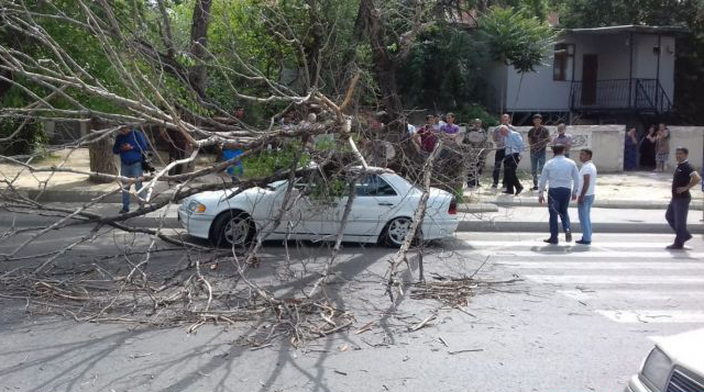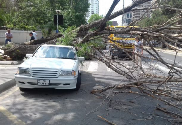 Bakıda ağac avtomobilin üzərinə aşıb - FOTO