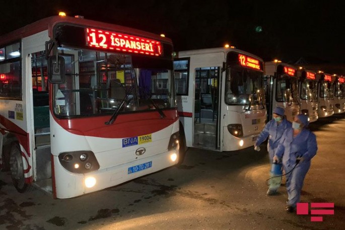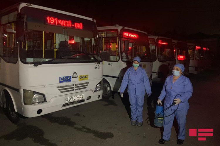 İnsanların həm təmas, həm də hava damcı yolu ilə infeksion xəstəliklərə yoluxmasına qarşı olan dərman preparatları ilə avtobuslar dezinfeksiya edilib.