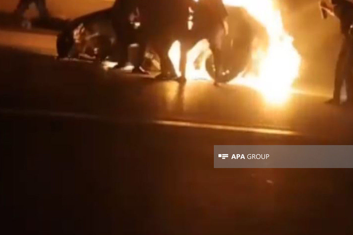 Bakıda qəzadan sonra maşın alovlandı, 2 nəfər yanıb öldü - FOTO - VİDEO