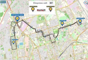 M3, M4, M5, M6 və M7 ekspres xətləri üzrə avtobuslar səhər saat 09:00-dan 17:00-dək fəaliyyət göstərəcək. Daha əvvəl təşkil olunan M1 və M2 ekspres xəttlərinin iş qrafiki isə (06:00-22:00) dəyişməz qalır.