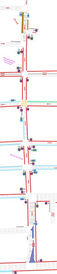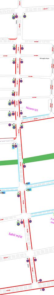 Bu cür tədbirlər digər küçələrdə də həyata keçiriləcək. Qanunsuz parklanmaya intellektual nəzarət kameralarının quraşdırılması nəzərdə tutulan yollar da müəyyən müddətdən sonra təhlil ediləcək. Nəqliyyat intensivliyinin artması və azalmasına uyğun olaraq yolun buraxıcılıq qabiliyyətinə əsasən yol nişanlarında dəyişikliklər edilə bilər.