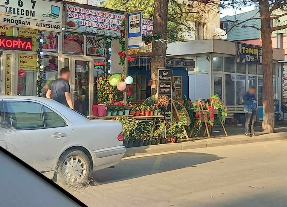 Bakıda gül mağazası səkini və avtobus dayanacağını zəbt edib - FOTO