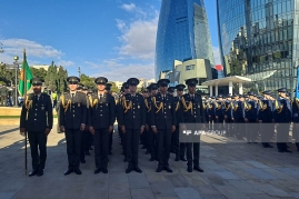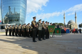 8 Noyabr - Zəfər Günü münasibətilə hərbi orkestrlərin müşayiəti ilə Bakıda hərbçilərin Zəfər yürüşləri başa çatıb.