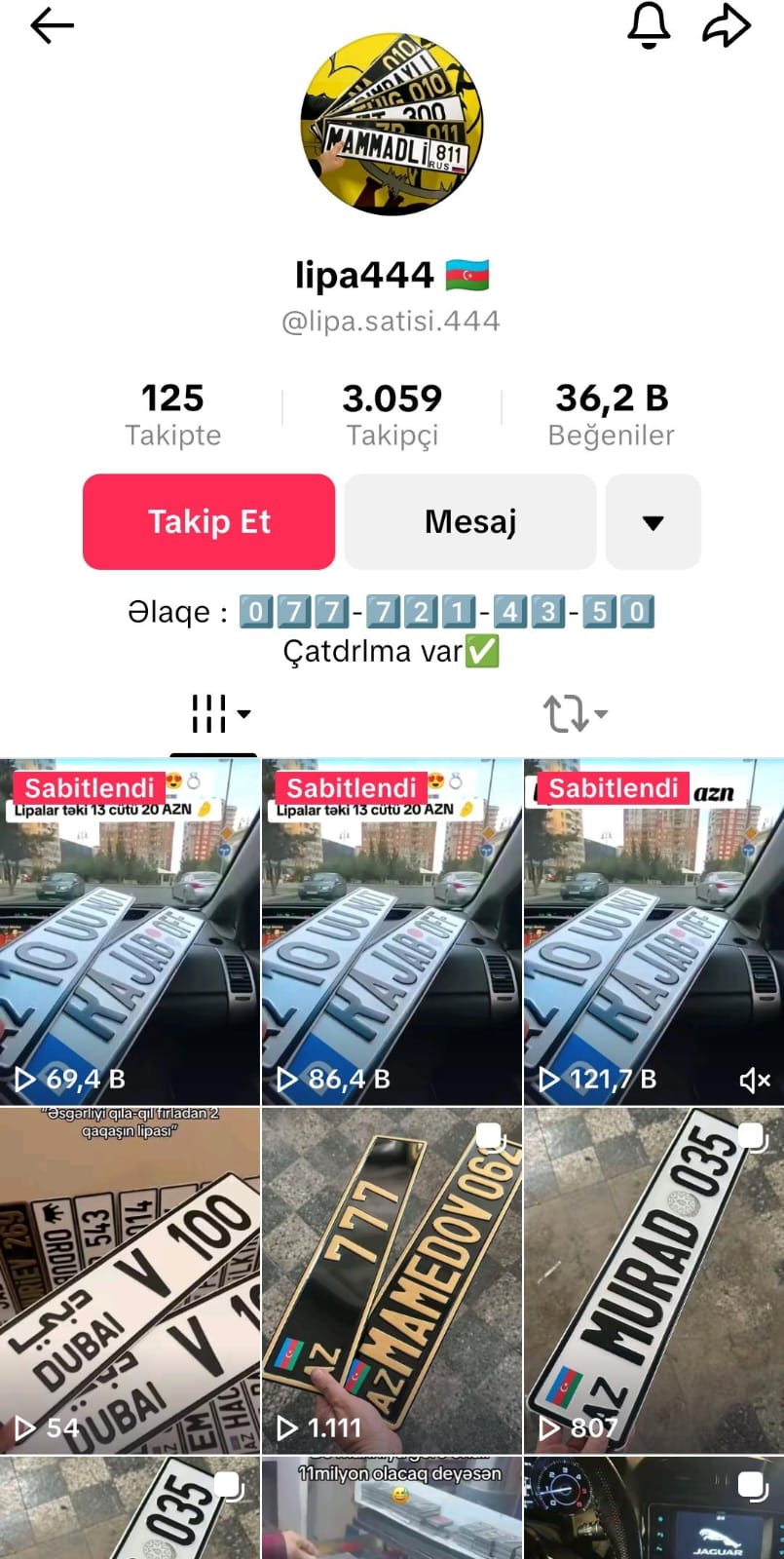 Son günlər sosial şəbəkə platforması “TikTok”da “lipa nömrə satışı” adı altında fəaliyyət göstərən bir sıra səhifələr və istifadəçilər tərəfindən dələduzluq halları müşahidə olunur.