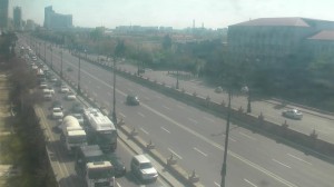 Hazırda Heydər Əliyev prospekti (şəhər istiqamətində) köməkçi yolda tunelə girişdə tıxac müşahidə olunur.