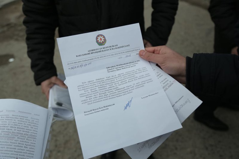 “Mənim atam rəhmətə gedib, qeydiyyatda olduğum ünvan söküldüyü üçün dəfn pulunu ala bilmirəm, deyirlər ki, gedib arayış gətirməliyəm. Yaşadığım yer hazırda söküldüyü üçün aidiyyatı qurumlar arayış da verə bilmirlər. Buranı kimlərin sökdüyünü, kimlərin icazəsi ilə tikinti aparıldığını bizə demirlər. Şirkətin rəhbəri ilə görüşəndə deyib ki, tikintiyə Binəqədi rayon İcra Hakimiyyətinin başçısı icazə verib. Hələ deyilənə görə, binanın birinci mərtəbəsini, yəni qeyri-yaşayış sahəsini Binəqədi rayon İcra Hakimiyyətinin vəzifəli şəxslərinə verəcəklər".
