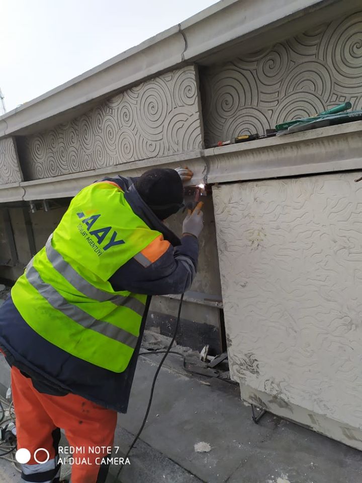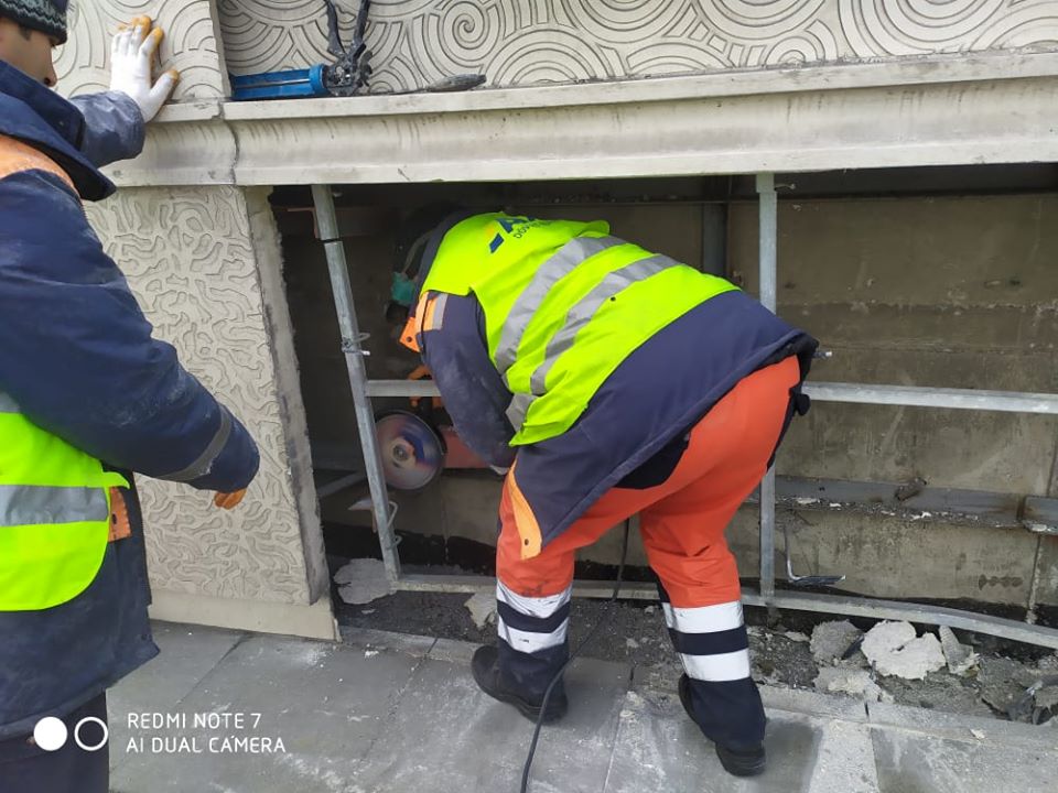 Bakıda qəza nəticəsində sıradan çıxmış fiber-beton üzlükləri bərpa edilib - FOTO