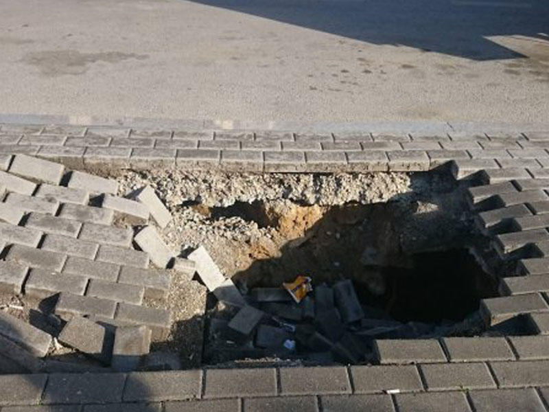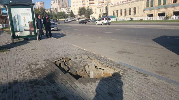 Bakıda səkidə "qara dəlik" açıldı - FOTO