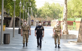 Daxili işlər orqanlarının əməkdaşları Bakı, Gəncə, Lənkəran və Sumqayıt şəhərlərinin, Abşeron, Yevlax, İsmayıllı, Kürdəmir və Salyan rayonlarının ərazilərində karantin rejiminin sərtləşdirilməsi ilə bağlı tələblərə əməl olunmasına nəzarəti davam etdirir.