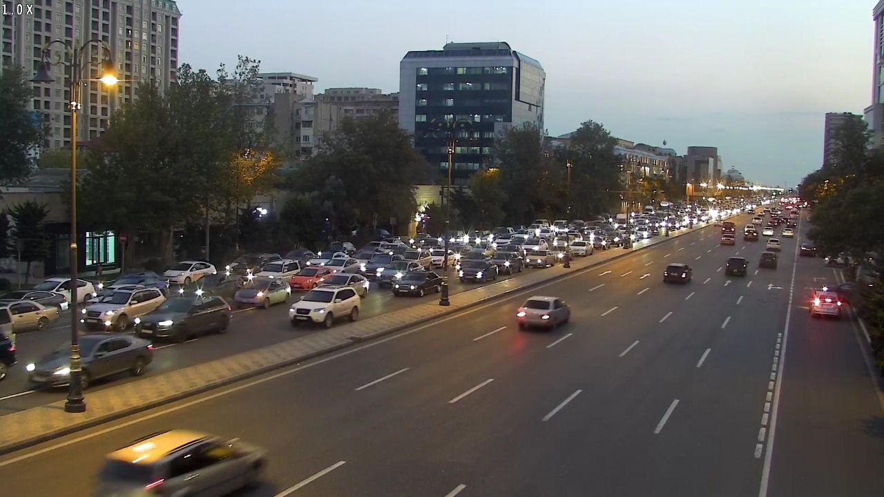 29.Mikayıl Üseynov prospekti, Bayraq Meydanının qarşısından Azneft dairəsi istiqamətində sıxlıq müşahidə olunur.