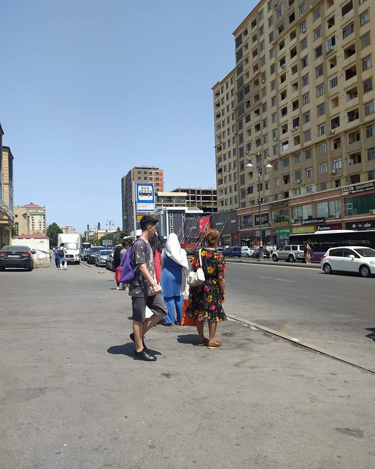 Bakıda təzad: kölgədə dayanacaq var, geniş səkidə insanlar günün altında gözləyir - FOTO