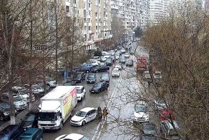 Bakıda yanan binaya görə yolda tıxac yaranıb - FOTO
