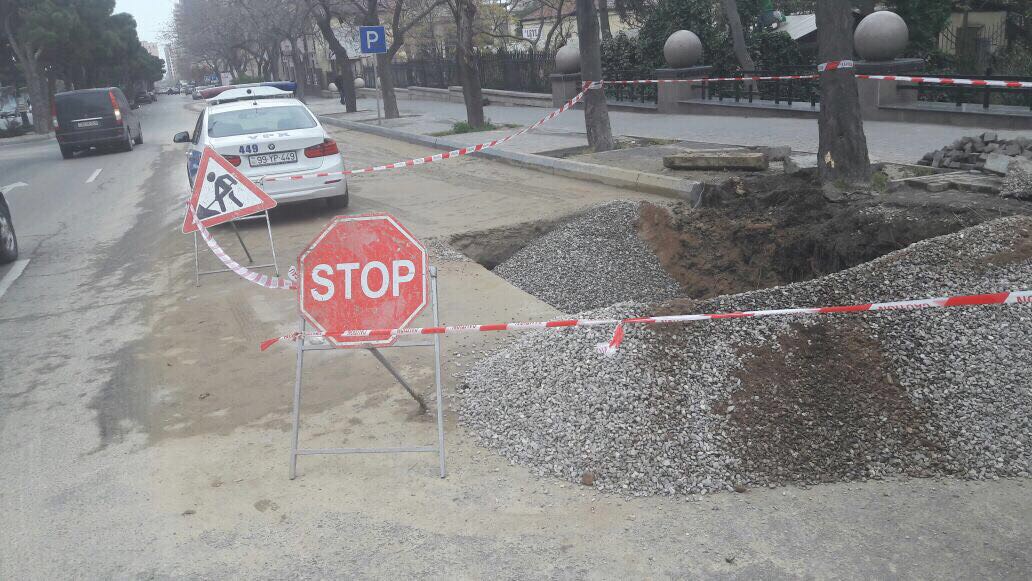 Bakıda Zabitlər bağının qarşısındakı yol bağlanıb - FOTO