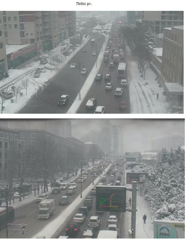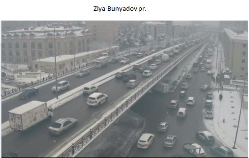 Bakıda qarlı və şaxtalı hava şəraiti ilə əlaqədar əksər küçə və prospektlərdə, o cümlədən Heydər Əliyev, Ziya Bünyadov və Tbilisi prospektləri, Həsən Əliyev, A.Bakıxanov, A.M.Şərifzadə, A.Salamzadə, H.Seyidzadə küçələrində, 20 Yanvar və Qələbə dairələrində nəqliyyat vasitələrinin hərəkətində sıxlıq müşahidə edilir. Avtosfer.az xəbər verir ki, bu barədə Bakı Nəqliyyat Agentliyindən (BNA) verilən məlumata görə, küçə və prospektlərdə yolun hərəkət hissəsi qar və buzla örtüldüyündən səhər saatlarında sərnişin avtobuslarının hərəkətində də çətinliklər yaranıb. "BNA mövcud vəziyyətin aradan qaldırılması və yollarda hərəkətin fasiləsizliyini və təhlükəsizliyini təmin etmək məqsədi ilə müvafiq qurumlarla birgə iş aparır. Bundan başqa, Heydər Əliyev prospekti-Hava limanı, eləcə də əks istiqamətdə, həmçinin, Zığ dairəsi-Hava limanı və əks istiqamətdə bütün hərəkət zolaqları üzrə maksimal sürət həddi 40 km/saat endirilib. Bir daha sürücülərə sükan arxasında ehtiyatlı olmaları və meteoroloji amilləri nəzərə almalarını tövsiyə edirik", - deyə BNA-nın xəbərində qeyd edilib.