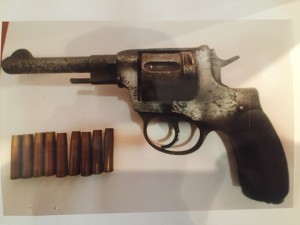 Onun üzərində şəxsi axtarış aparılan zaman 1 ədəd atəşə yararlı “Naqan” markalı silah və həmin silaha məxsus 9 ədəd 7.62 kalibrli patron aşkar olunaraq maddi sübut kimi götürülüb.