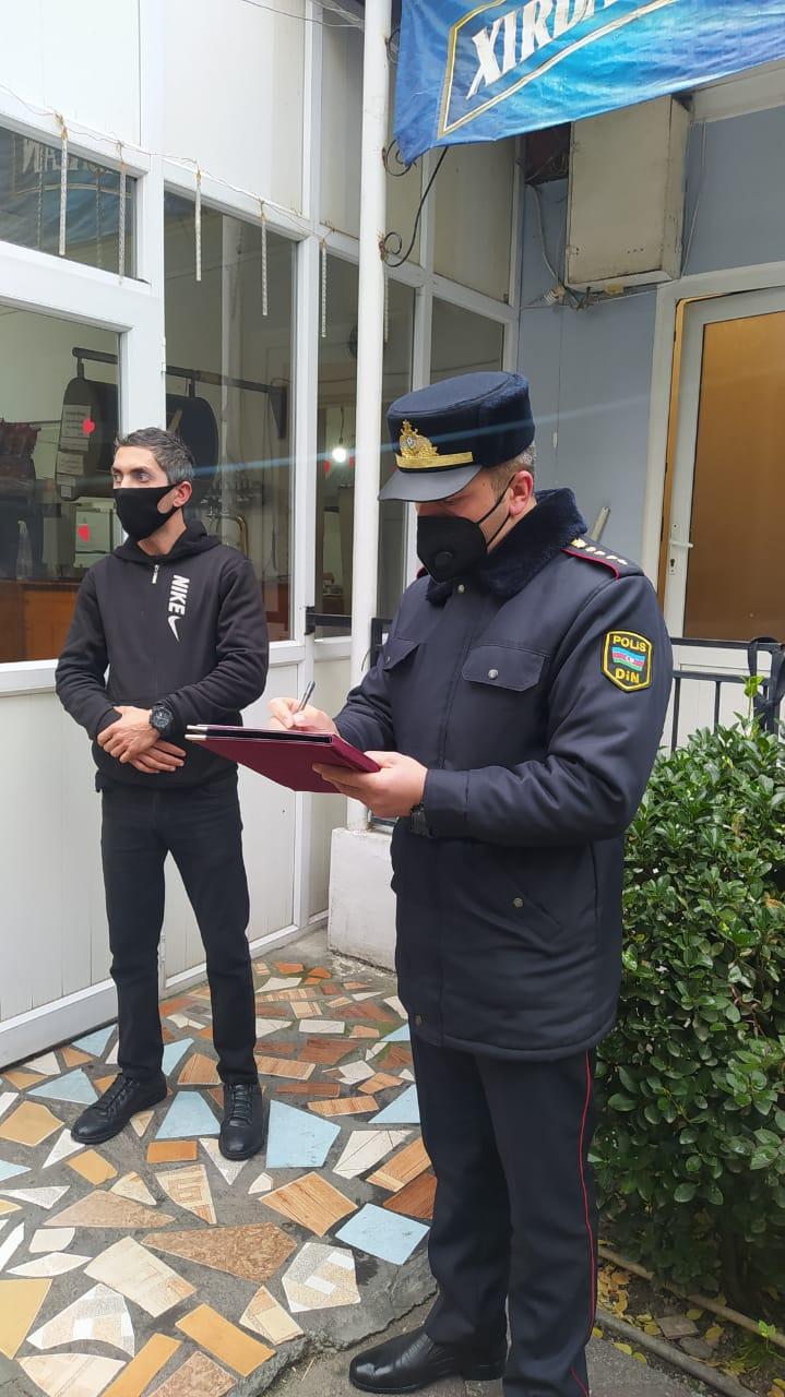 Rayon Polis Şöbəsinin əməkdaşları tərəfindən keçirilən nəzarət tədbirləri zamanı qapalı restoran və kafelərdə müştərilərin COVID-19 pasportu, eləcə də həmin obyekt sahibləri tərəfindən karantin rejiminin qayda və tələblərinə riayət edilib-edilməməsi yoxlanılıb. Yoxlamalar zamanı bir neçə obyektdə xidmət personalının tənəffüs yollarını qoruyan fərdi vasitələrdən istifadə etmədiyi aşkarlanıb.