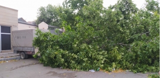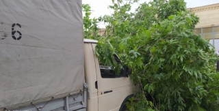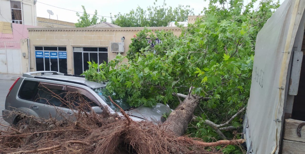 Güclü külək Bərdə rayonunda bir sıra fəsadlar törədib. Külək Nüşabə və Baki küçələrində ağacları və iri budaqları qıraraq avtomobillərin üzərinə salıb.