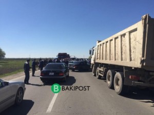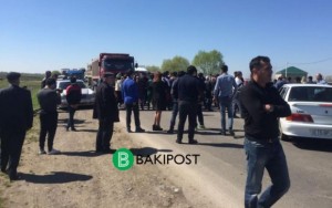 Biləsuvarda aksiya: Bakı-Astara şosesi bağlandı - FOTO