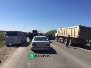 Hazırda sözügedən yolda hərəkət tamamilə dayanıb, böyük tıxac yaranıb