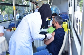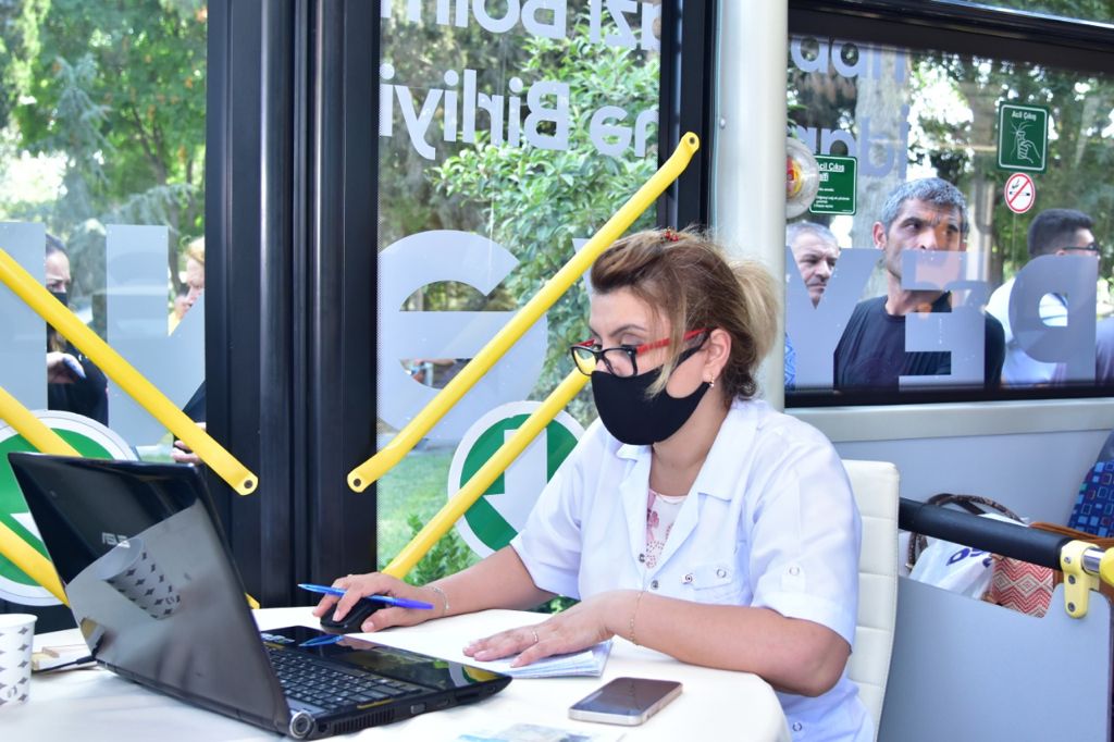 Binəqədidə səyyar avtobusda vaksinasiya davam edir - FOTO
