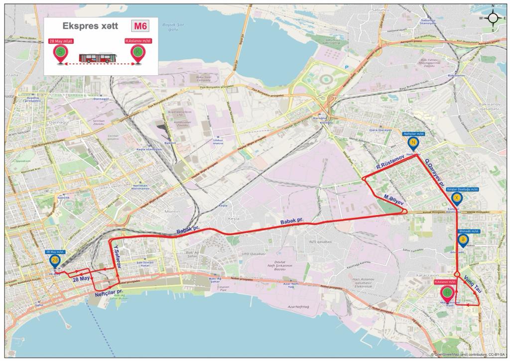 Ø M6 (“28 May” m/st-“H.Aslanov” m/st) ekspress xətti üzrə avtobusların hərəkəti Babək prospektindən keçməklə təşkil olunacaq.