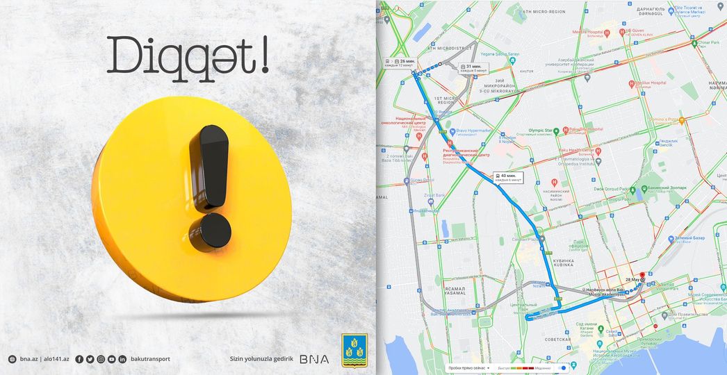 Bakı şəhərində müntəzəm marşrut xətləri barədə məlumatları Google Maps” platformasından əldə etmək mümkündür.
