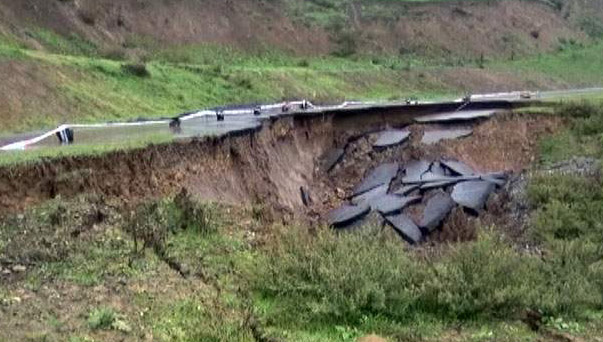 Çökən yolda nəqliyyatın hərəkəti bərpa olundu - Cəlilabadda