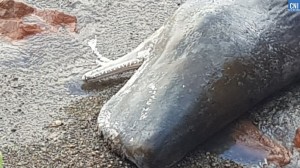 Dalğa 50 tonluq kaşalot cəsədini sahilə atıb - FOTO