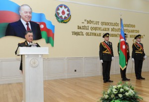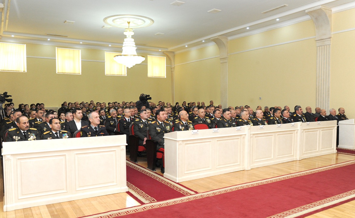 Əvvəlcə salona Daxili Qoşunların Döyüş Bayrağı gətirilib. Ulu öndər Heydər Əliyevin, ölkəmizin suverenliyi və ərazi bütövlüyü uğrunda, xidməti borclarını yerinə yetirərkən qəhrəmanlıqla həlak olmuş hərbi qulluqçuların və bütün şəhidlərin əziz xatirəsi bir dəqiqəlik sükutla yad edilib, dövlət himni səsləndirilib.