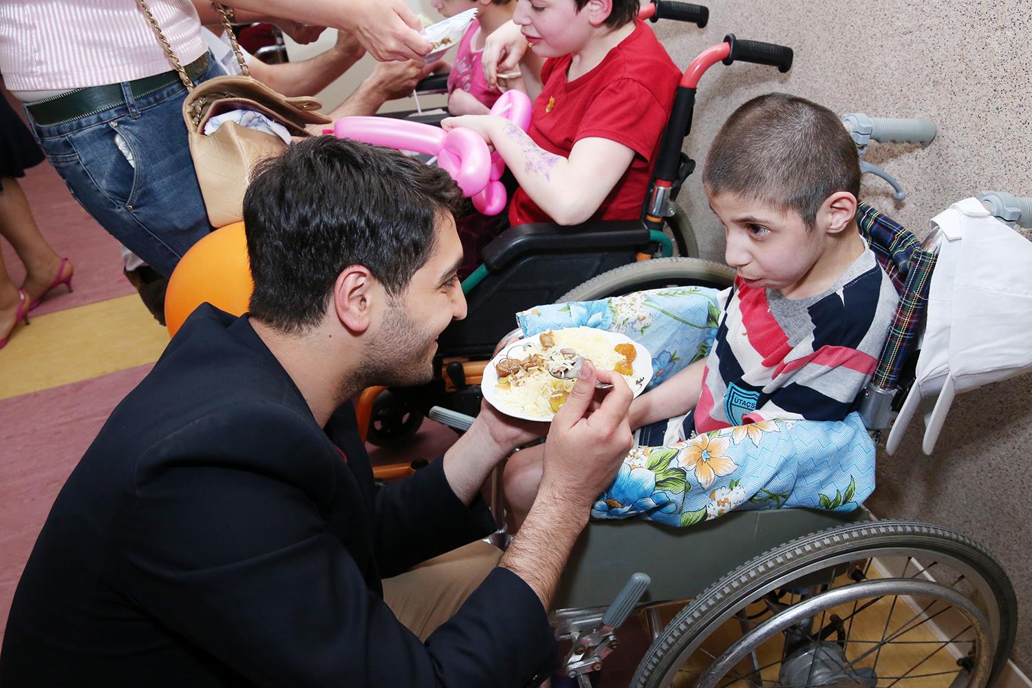 Daha sonra müəssisənin həyətində əqli və fiziki qüsurlu uşaqlara sənətçilər, aktyorlar və gözbağlayıcılar maraqlı səhnəciklər eləcə də musiqi proqramı təqdim ediblər, uşaqlara əsl bayram əhval-ruhiyyəsi yaşadıblar.