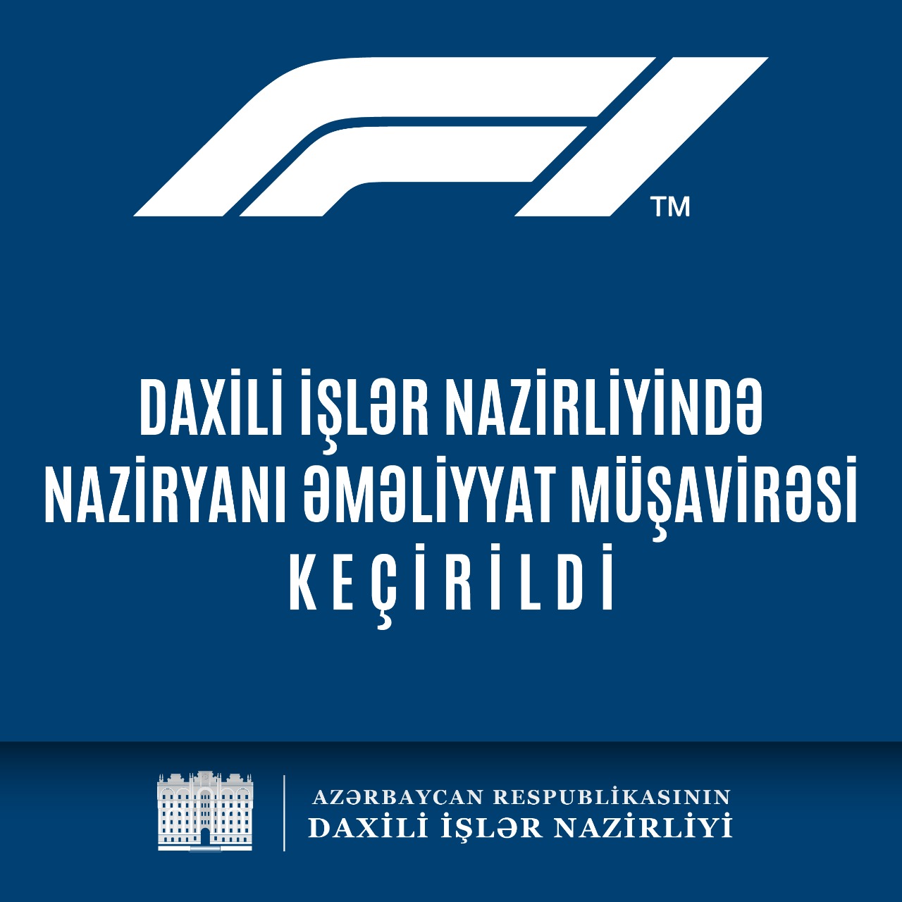 İyunun 7-də Daxili İşlər Nazirliyində Bakı şəhərində baş tutacaq “2022 Formula 1 Azərbaycan Qran Prisi”nin keçiriləcəyi müddətdə ictimai asayişin mühafizəsinin təşkili və qarşıda duran vəzifələrə həsr olunmuş videokonfrans formatında naziryanı əməliyyat müşavirəsi keçirilib.