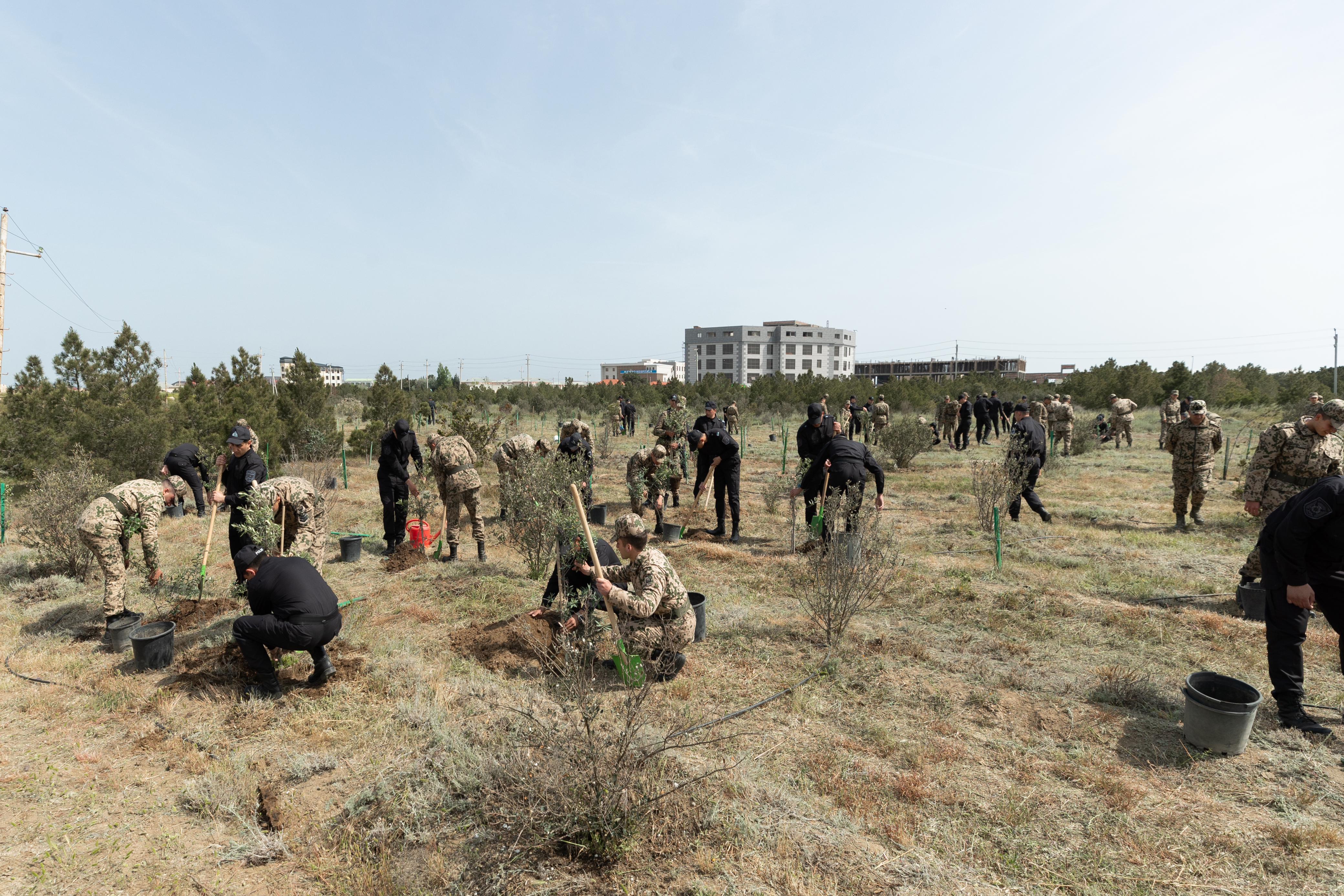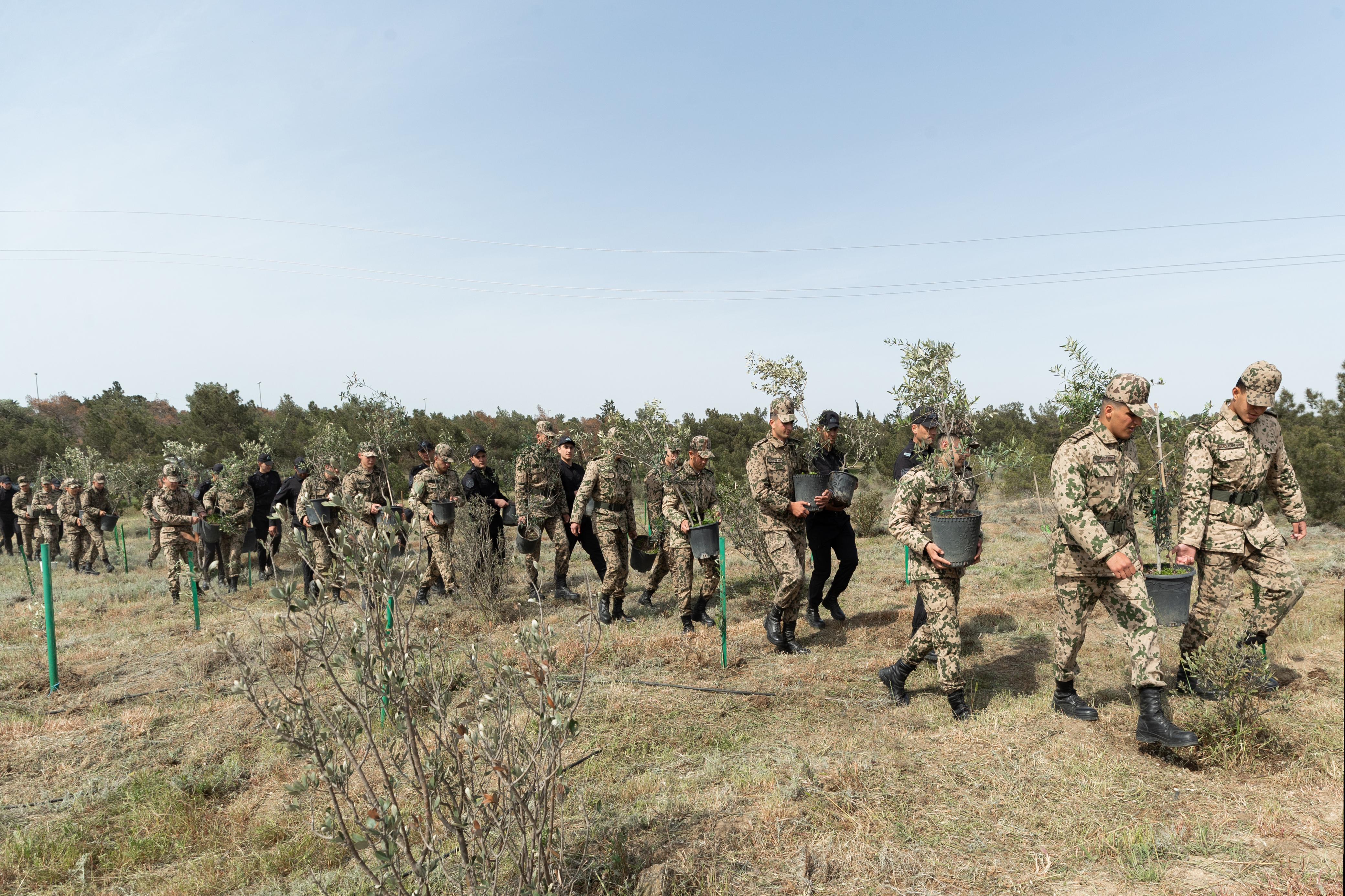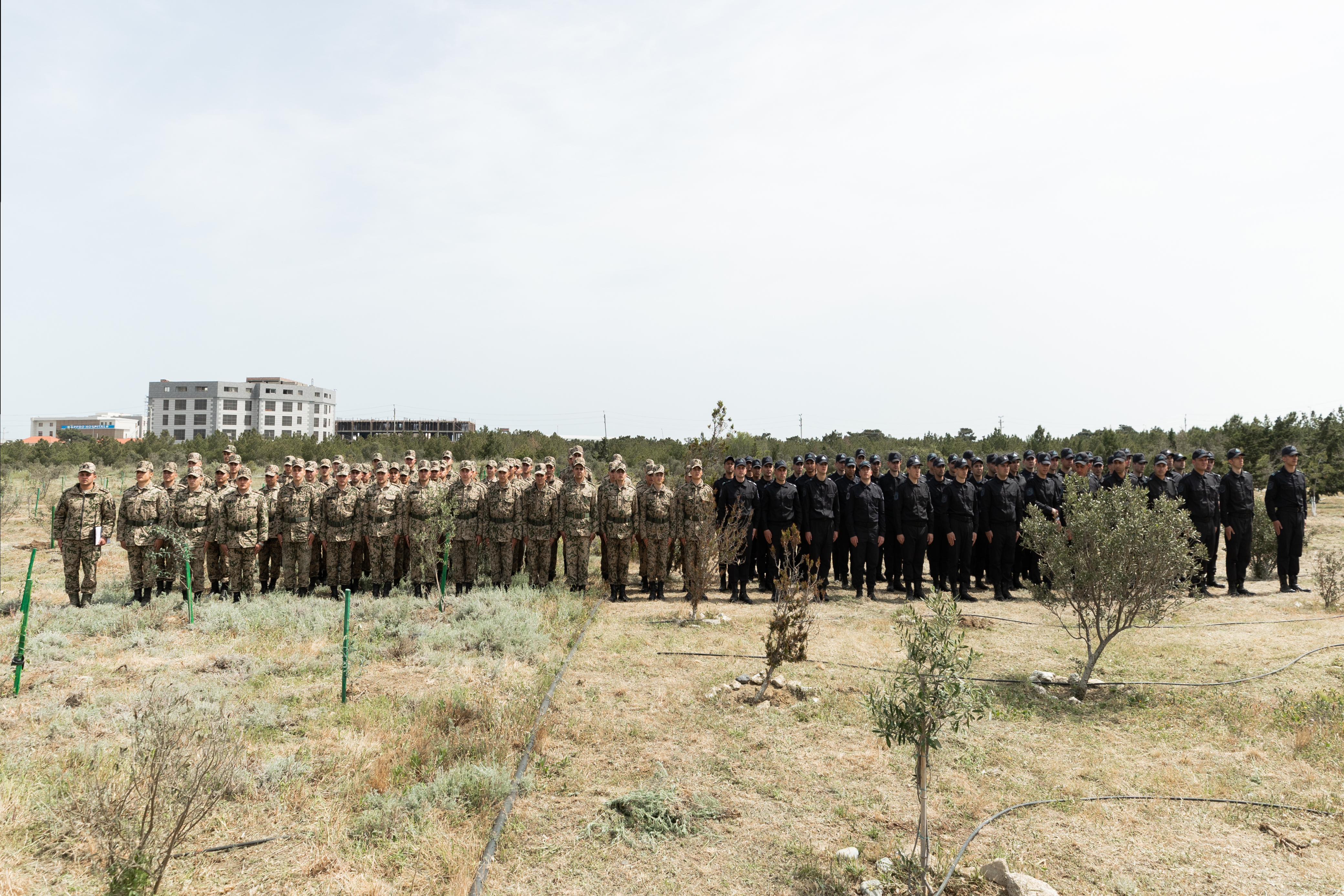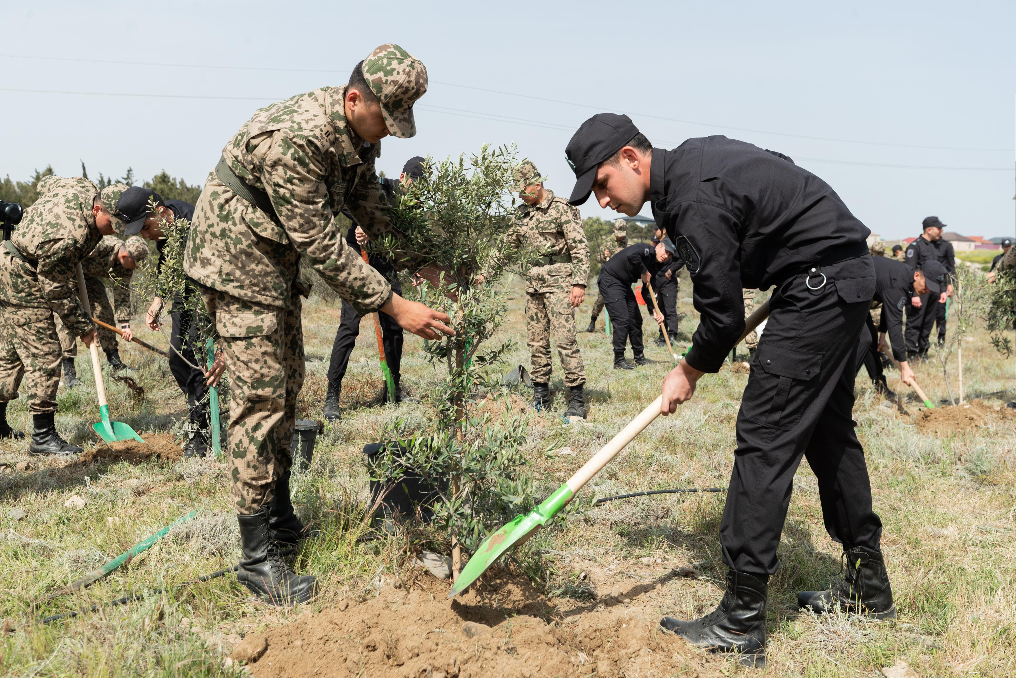 Avtosfer.az xəbər verir ki, əvvəlcə polis əməkdaşları və hərbi qulluqçular ərazidə olan bitkilərə qulluq göstərib, yaşıllıq zonasında təmizlik işləri aparıblar. Sonra yerli iqlimə uyğunlaşdırılmış zeytun tinglərini əkib, onların suvarılmasını təmin ediblər. Tinglərin küləkdən qorunması və normal böyümələri üçün qoruyucu dirəklər basdırıblar.