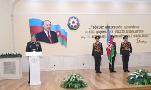 Əvvəlcə ulu öndər Heydər Əliyevin, ölkəmizin suverenliyi və ərazi bütövlüyü uğrunda, xidməti borclarını yerinə yetirərkən qəhrəmanlıqla həlak olmuş hərbi qulluqçuların və bütün şəhidlərin əziz xatirəsi bir dəqiqəlik sükutla yad edilib, dövlət himni səsləndirilib.