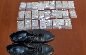 Bundan sonra, şəxsi əşyaların arasında olan 1 cüt kişi ayaqqabısı çamadandan çıxarılıb və hər tayının daxilində həqiqətən polietilen bükümlər gizlədildiyi müəyyən edilib. Daha sonra vətəndaş yoxlama otağına dəvət olunub. Nəticədə, çamadanda olan 1 cüt kişi ayaqqabısının hər tayının uc hissəsinə qoyularaq, gömrük nəzarətindən gizlədilmiş cəmi 26 ədəd bükümdə müxtəlif həcmli və formalı qaşlar aşkarlanıb.