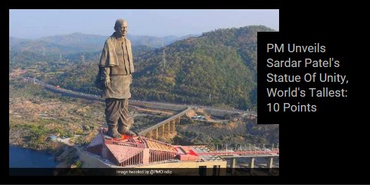 Hindistanın Qucarat ştatında dünyanın ən hündür abidəsi sayılan “Birlik” heykəlinin təntənəli açılışı olub. Avtosfer.az xəbər verir ki, açılış mərasimi NDTV telekanalı vasitəsilə yayımlanıb. Heykəltaraşlar abidə üzərində Hindistan milli azadlıq hərəkatının lideri Mahatma Qandinin ardıcıllarından biri olan Vallabxai Patelin obrazını əbədiləşdiriblər. Abidənin hündürlüyü 182 metrdir. O, ABŞ-dakı “Azadlıq” heykəlindən (93 metr) təxminən 2 dəfə hündürdür. Heykəlin hazırlanmasına 5 il əvvəl - 2013-cü il oktyabrın 31-də başlanılıb. Rəsmi məlumatlara görə, layihənin icrasında 250 mühəndis və 3400 işçi çalışıb. Abidə ümumilikdə 430 milyon dollara başa gəlib.