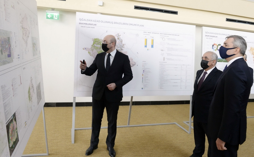 Sonra Dövlət Şəhərsalma və Arxitektura Komitəsinin sədri Anar Quliyev işğaldan azad olunmuş ərazilərin Ümumi Planı ilə əlaqədar görülmüş işlər barədə təqdimat edib.