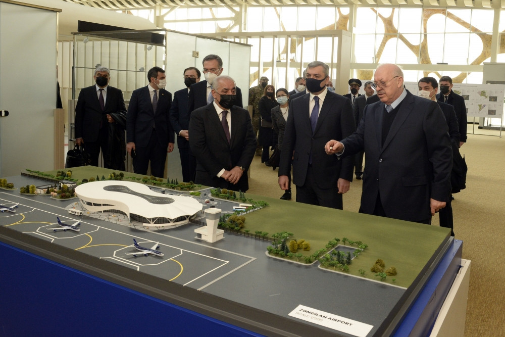 Daha sonra Zəngilan rayonunda iqtisadiyyat naziri Mikayıl Cabbarov “Araz Vadisi İqtisadi Zonası”nda və Ağdam Sənaye Parkında görülən işlər barədə məlumat verib. Nümayəndə heyəti Zəngilan Hava Limanında işlərin gedişatına baxış keçirib. AZAL-ın prezidenti Cahangir Əsgərov bildirib ki, uçuş-enmə zolağının uzunluğu 3 min metr olan hava limanında tikinti işlərinə ötən ilin may ayında başlanılıb. Zəngilan Hava Limanı bütün növ təyyarələri, o cümlədən ağır yük təyyarələrini qəbul etmək imkanına malik olacaq. Tikinti işlərinin bu il tamamlanması planlaşdırılır.