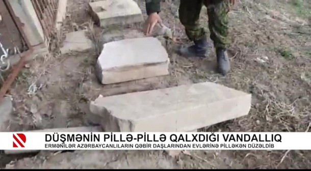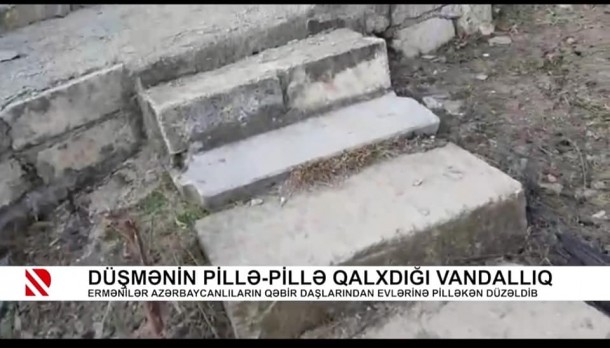 Ermənilər azərbaycanlılara aid olan qəbir daşlarından öz evlərində pilləkən kimi istifadə edib. Avtosfer.az xəbər verir ki, bununla bağlı "REAL TV" süjet hazırlayıb. Kadrdanda göründüyü kimi, Laçın rayonunda məskunlaşmış ermənilər, qəbir daşlarından pilləkən kimi istifadə etməsi bir daha vandalizm hərəkətlərini nümayiş etdirir.