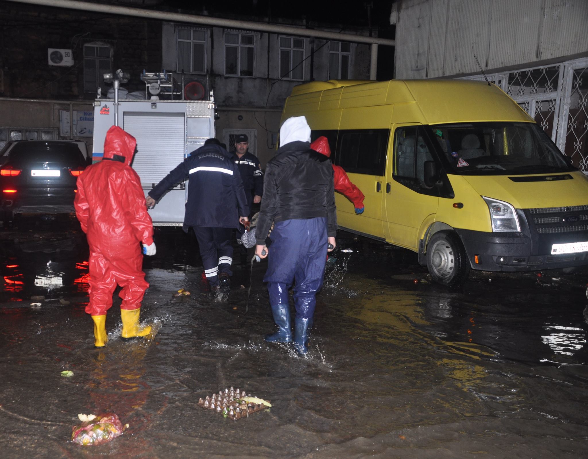 Son günlər yağan intensiv yağışlar nəticəsində Bakı şəhərinin bəzi ərazilərində fərdi yaşayış evlərinin həyətyanı sahələri, küçə və prospektlər yağış suları ilə dolub, nəqliyyatın hərəkətində məhdudiyyət yaranıb. Fövqəladə Hallar Nazirliyinin mətbuat xidmətindən Avtosfer.az-a verilən məlumata görə, güclü yağışların törətdiyi fəsadların aradan qaldırılması üçün dərhal FHN-nin Dövlət Yanğından Mühafizə Xidməti, Mülkü müdafiə qoşunları, Xüsusi Riskli Xilasetmə Xidməti və Dövlət Sularda Xilasetmə Xidmətinin canlı qüvvə və texnikası paytaxtın rayonlarına cəlb olunub. Aparılan xilasetmə əməliyyatları nəticəsində fərdi yaşayış evlərindən 77 nəfər təhlükəsiz əraziyə təxliyə olunub. Hazırda yağış suları ilə dolmuş ərazilərdə suçəkmə işləri davam etdirilir.