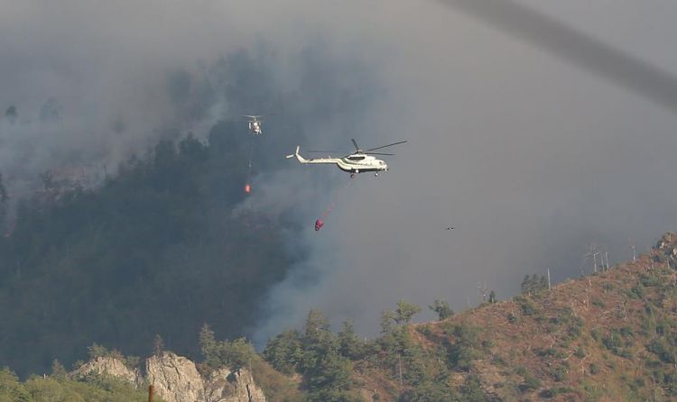 FHN-in helikopteri yanğınlarının söndürülməsində iştirak edir - FOTO