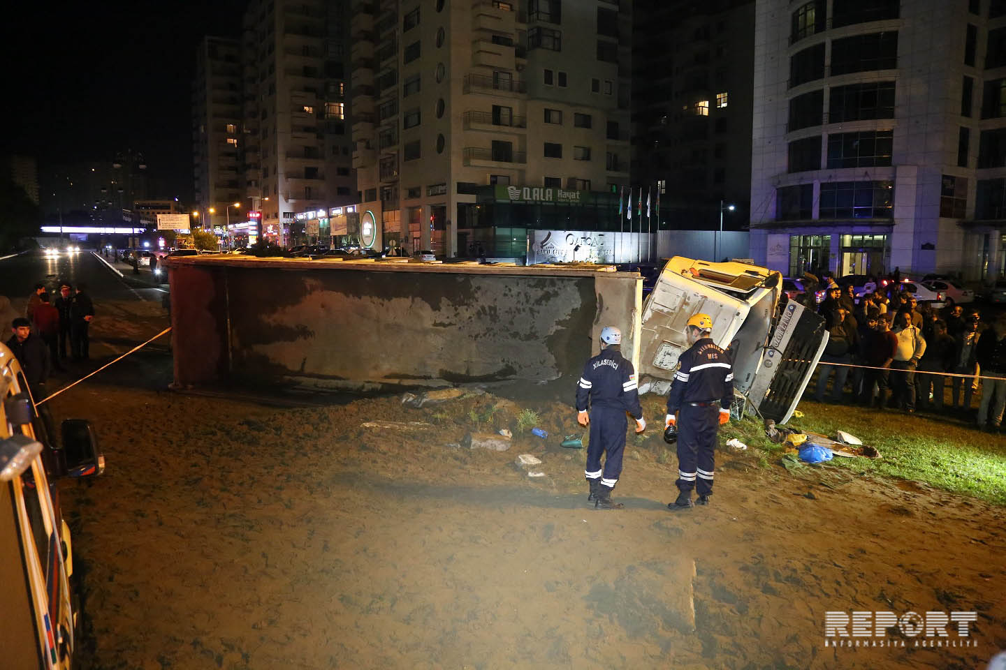 Qeyd edək ki, yük avtomobilinin aşması nəticəsində yola dağılmış qumun bir hissəsi təmizlənib və hərəkət nisbətən bərpa edilib.