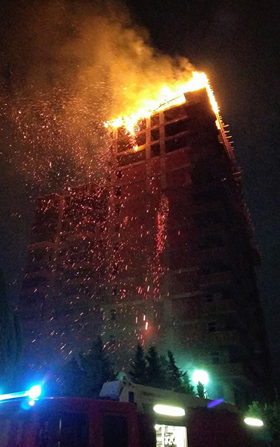 Binəqədidə güclü yanğın olub. Avtosfer.az FHN-ə stinadən xəbər verir ki, çoxmərtəbəli yaşayış binasının (tikintisi başa çatmamışdır) 16-cı mərtəbəsində quraşdırılmış taxta qəliblər 200 m² sahədə yanıb. Taxta qəliblərin qalan hissəsi və yaxınlıqdakı tikililər yanğından mühafizə olunub. Yanğın yanğından mühafizə bölmələri tərəfindən söndürülüb.