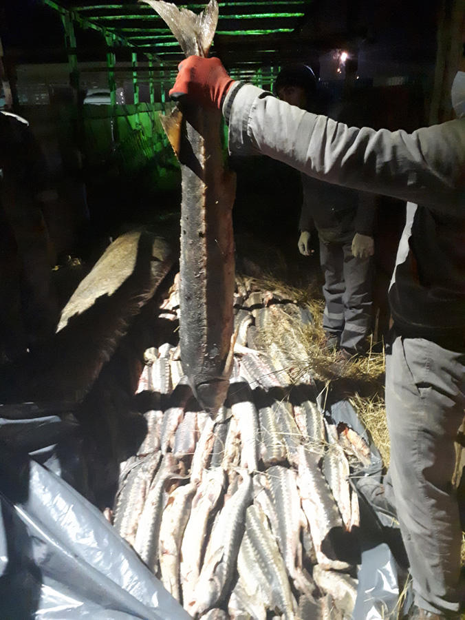 Gəminin içində "Kamaz", "Kamaz"ın içində ton yarım nərə balığı – FOTO + VİDEO